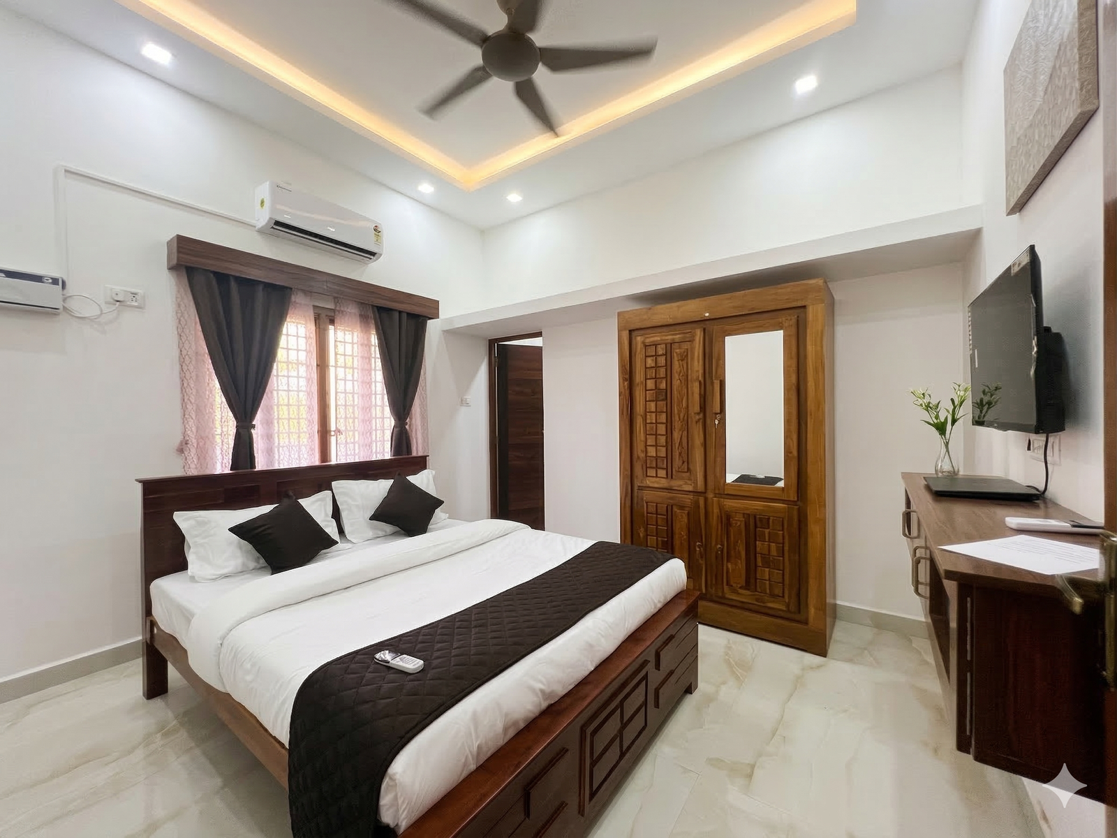 Enjoy a relaxing stay in our double rooms in Kumbakonam, ideal for couples or friends. Experience the tranquility of the temple town with modern comforts.